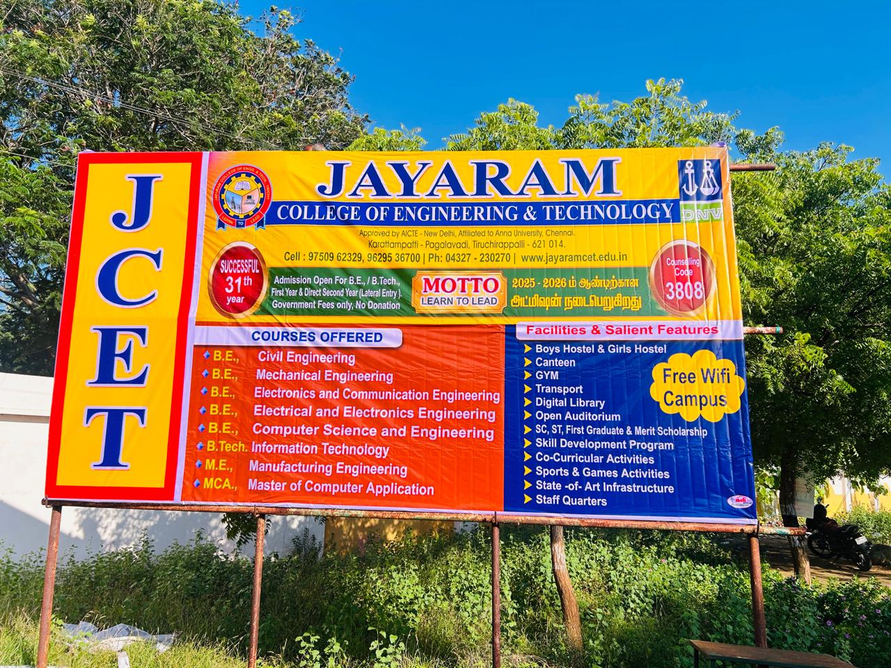 Jayaram College of Engineering and Technology (JCET) is a dream destination for those who aspire to pursue their studies in engineering career.